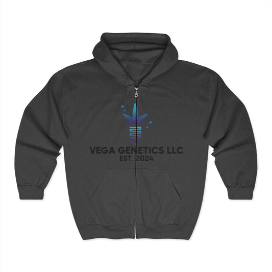Vega Genetics Cannabis Full Zip Hoodie – Trendy Unisex Sweatshirt for Comfort & Style
