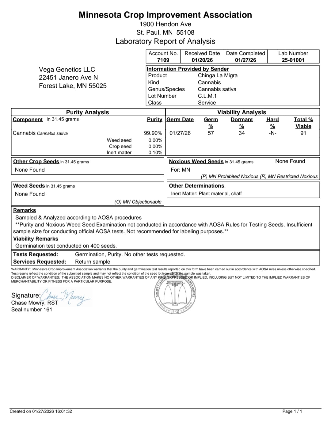 Vega Genetics Guarantees